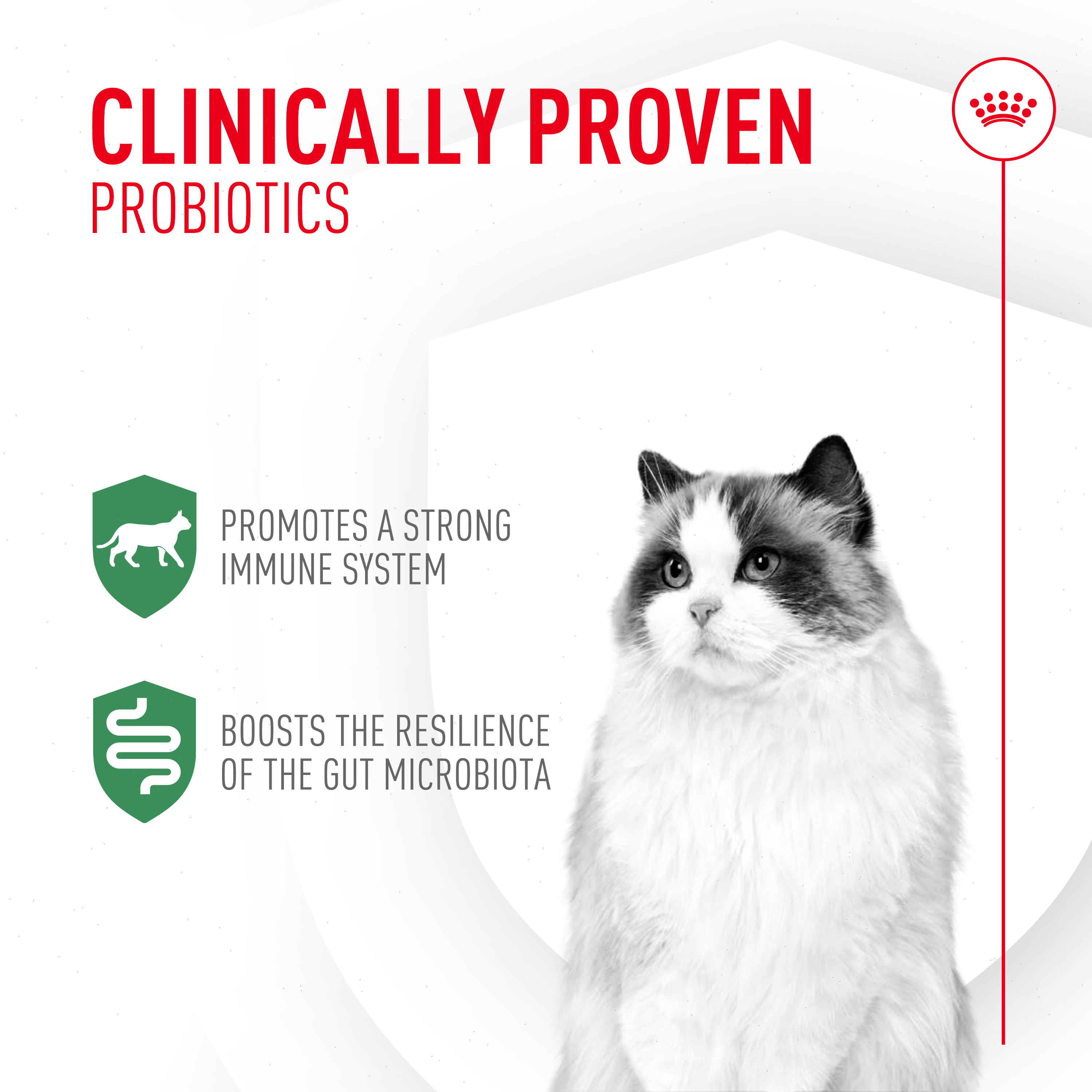 Royal Canin Probiotics for Cats Digestive and Immune Health is a delicious and delightful addition to your pet’s wellness. Developed by veterinarians, these cat probiotics contain live Saccharomyces boulardii CNCM I-1079 strain clinically proven to boost the beneficial bacteria in the gut as well as the resilience of the digestive microbiota in cats of all ages and sizes. Support your cat’s digestive health with these guaranteed live active probiotics for optimal, regular stools. Made with a taste your cat is guaranteed to love, simply sprinkle the contents of one cat probiotic powder packet onto your cat’s wet food or dry food to proactively support their gut health. Administer one packet daily or as directed by your veterinarian. Guaranteed live active probiotics in each packet support digestive health and immune health in your pet. Use Royal Canin cat supplements with your cat’s food for their overall well-being and their digestive health.